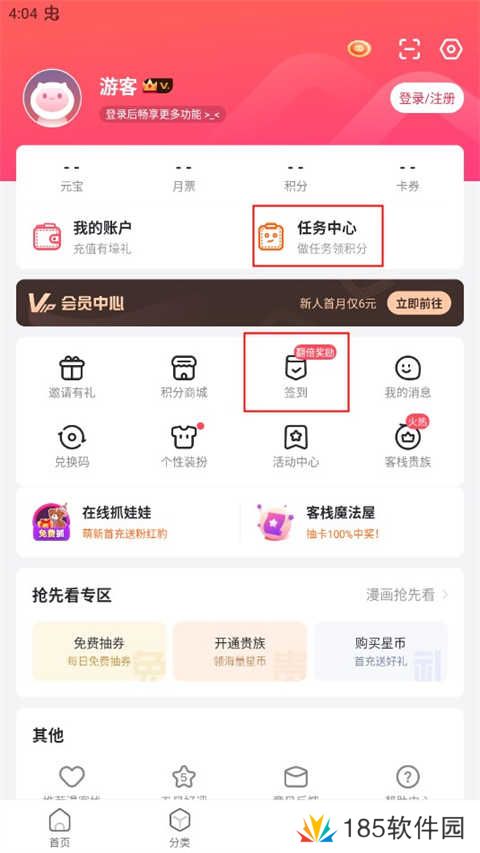 漫客栈怎么免费得会员
