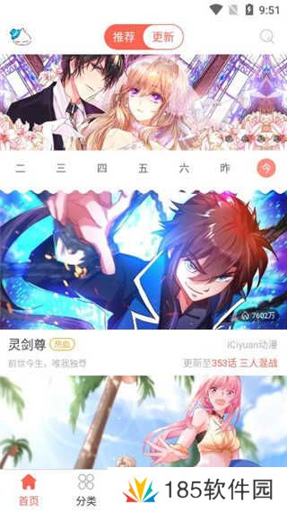 1、在首页中就可以看到推荐的漫画了