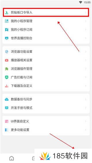 1、下载好app后,点击进入右下角的设置,在这里选择【剪辑版口令导入】。