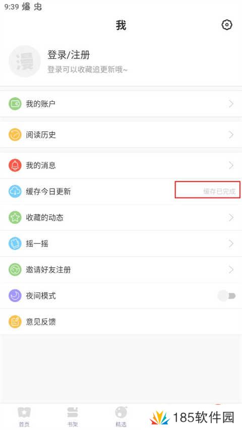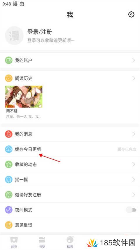 4、收藏完成之后来到我的界面,点击缓存今日更新。
