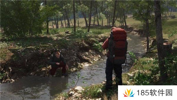 3.将蓝色塑料瓶子放入背包,与水源互动进行灌水,喝完后可以在水边再次装水。