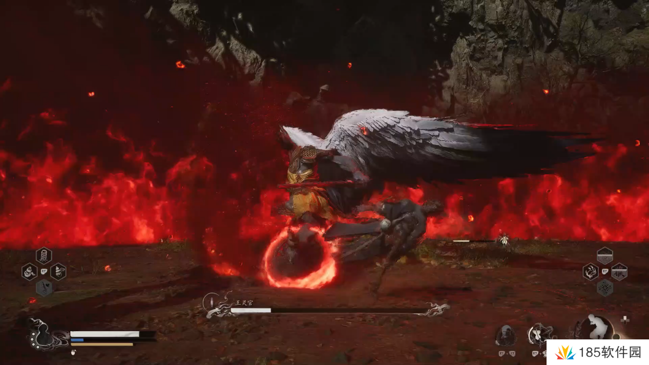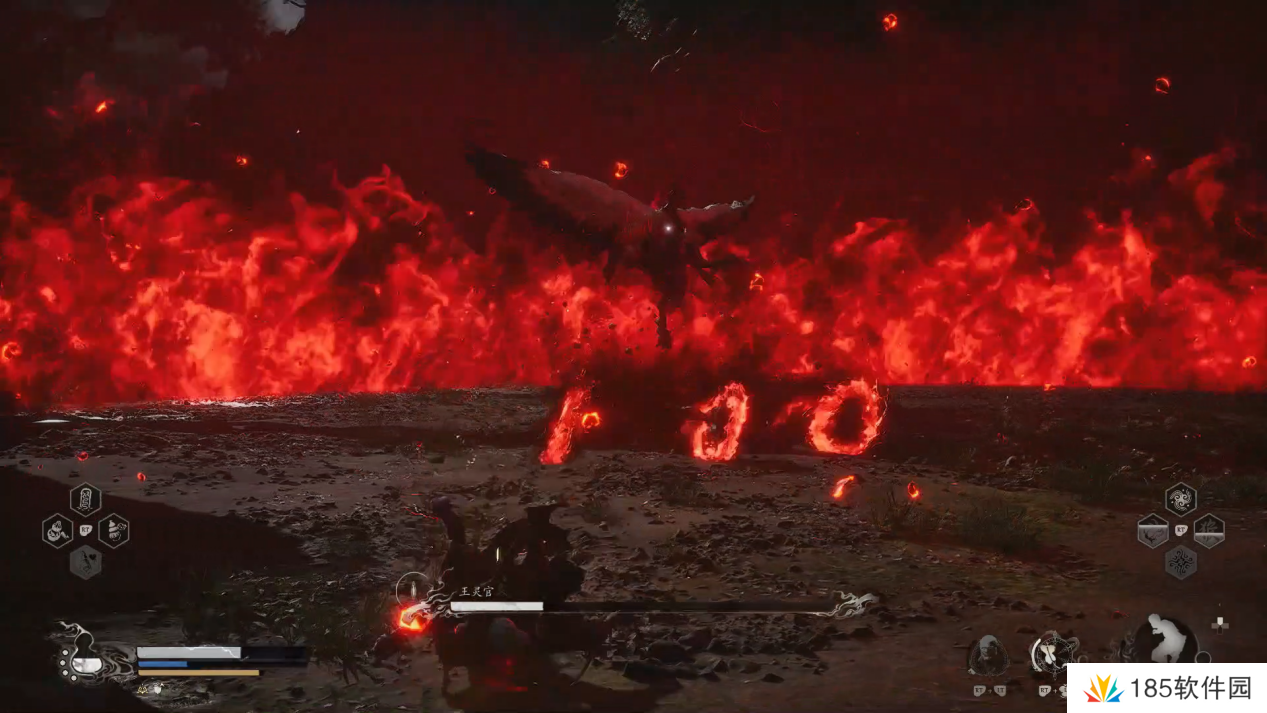 二阶段(用风火轮画出一个火焰圈,此阶段可以用芭蕉扇打断会简单很多,下面介绍一下第三阶段招式。)