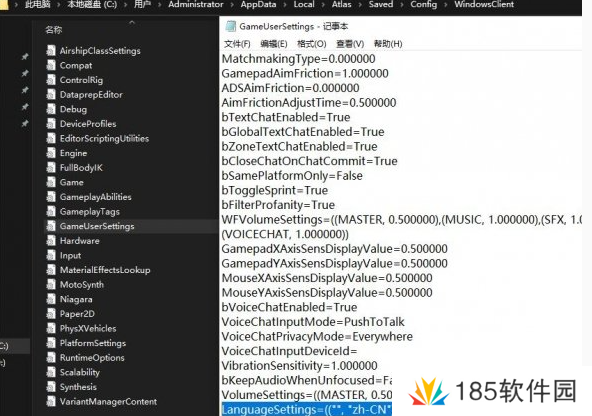 修改文件:GameUserSettings.txt,修改语言设置:LanguageSettings=(("", "zh-CN"),("Audio", "zh-CN"))
