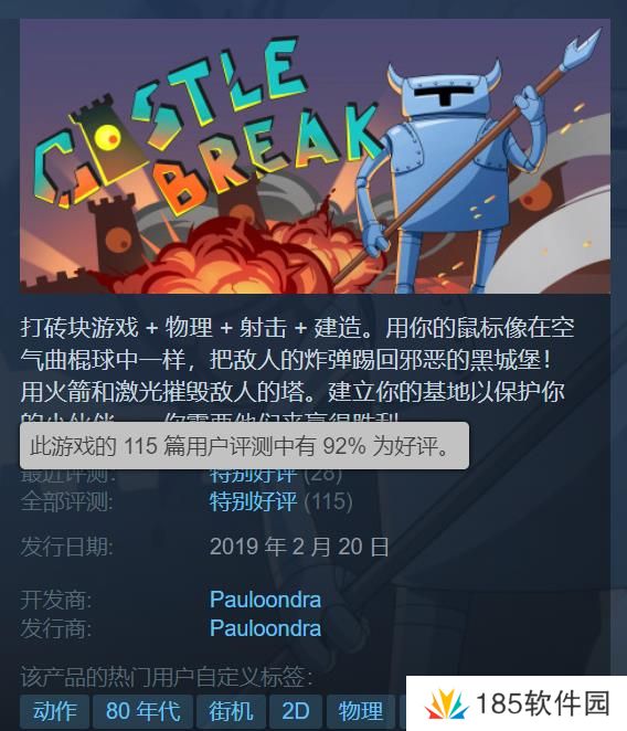 今日,Steam又推出一款限时免费游戏--《城堡破坏》,限免活动截止10月14日前,入库后可永久保留。游戏原价22元,虽然不贵,但蚊子再小也是肉,能薅一款是一款。
