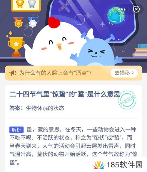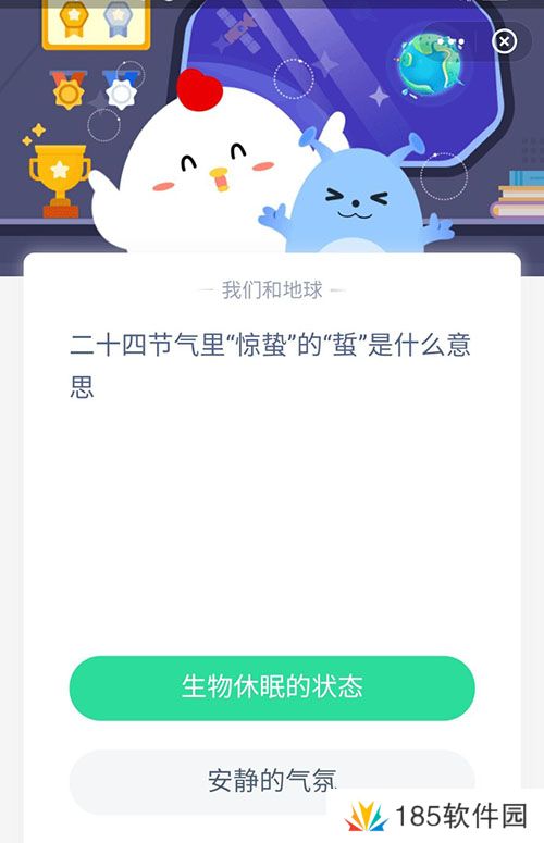 以上今天小鸡宝宝考考你的正确答案,相信有不少小伙伴都知道惊蛰的蛰是什么意思了。剩下就赶紧去领取自己的小鸡饲料吧,沙包手游会你持续更新蚂蚁庄园中的答案,有需要的小伙伴不要错过了哦。