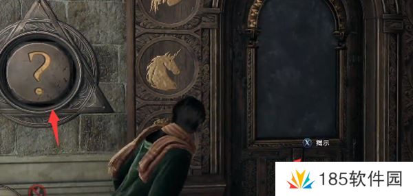 2、在传送点旁边即可看到魔咒学教室的门,交互之后揭示谜面。