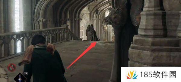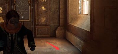 2、首先我们进入礼堂之后向左前方移动,之后拐进去即可看到需要解谜的门。