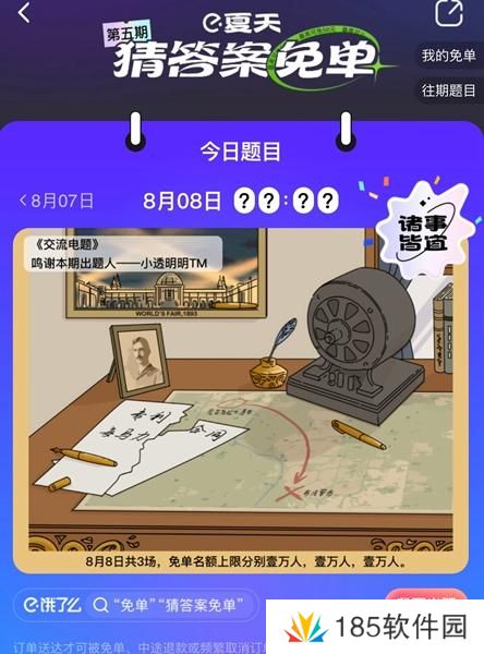 饿了么免单一分钟8.8答案一览 8月8日的免单一共有着3场,3场分别的时间在1116、1701以及1910。
