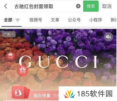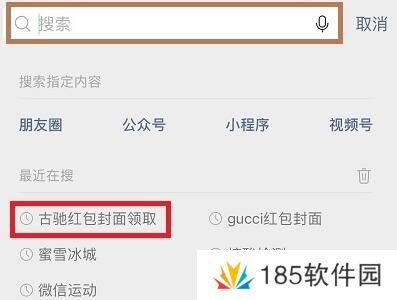 1、首先进入微信,再输入红包名,比如“古驰红包封面领取”。