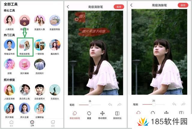 点击【工具】-【消除笔】就可以使用它了,消除水印效果是很自然的,也不会留下任何的水印痕迹。