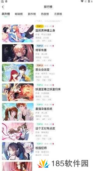 3、点击排行榜,这里有飙升榜、畅销榜、热度榜等多种榜单,当你不知道看什么漫画的时候,可以来这挑挑;