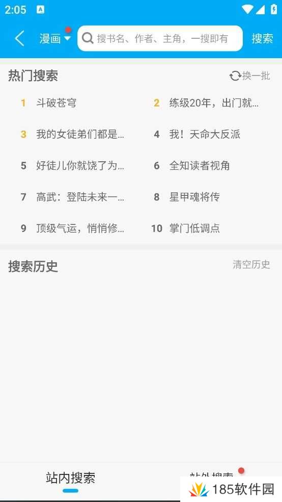 2、如果有想看的漫画,可以直接使用搜索功能哦!支持站内搜索和站外搜索。
