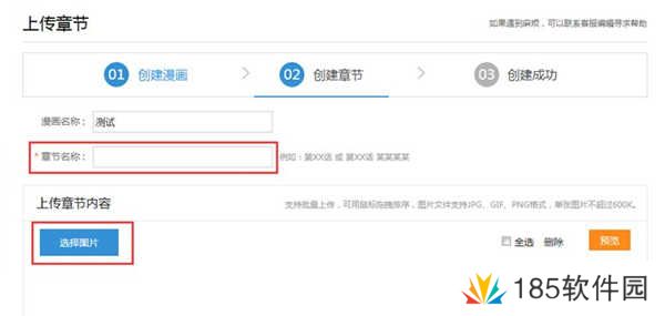 (1)、在创建章节页面,填写章节标题,并点击选择图片按钮上传图片,最后点击确定按钮即发布成功。