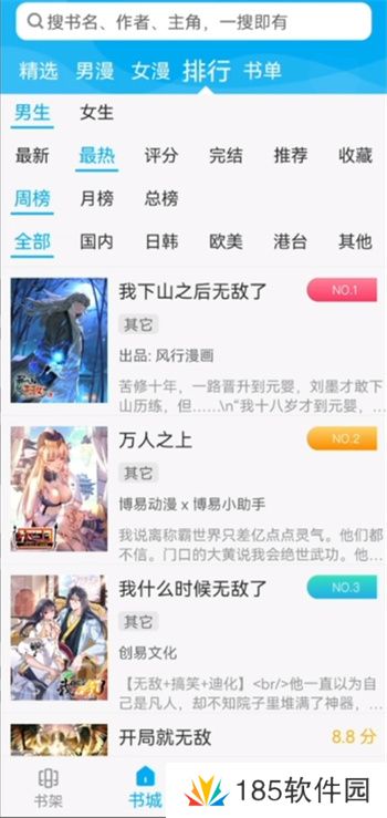 2、这里是软件书城中的排行功能,在这里可以观看到每日在这里各种排行同类书籍前面的动漫,发现更多好的动漫作品;