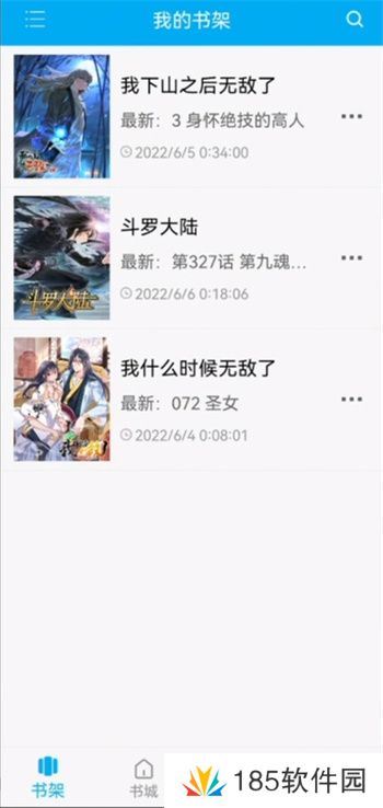 1、首先一进入这里就是软件的首页,在这里可以看到自己的书架里所收藏的书籍,快速找到自己想要观看的动漫;