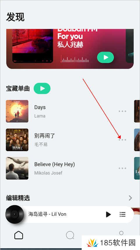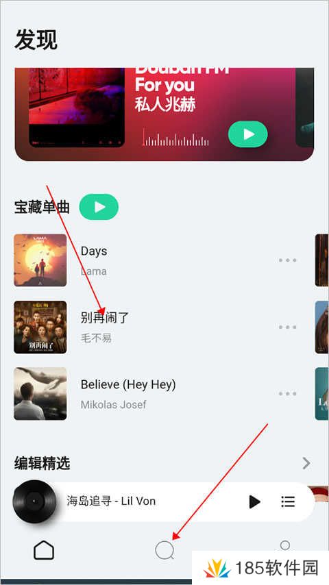 第一步、下载最新版豆瓣FM,下载安装成功后打开首页,点击右上角放大镜的那个标志
