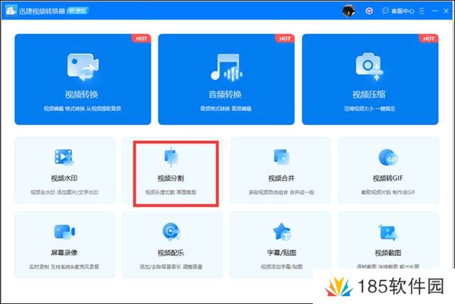 第一步 打开【迅捷视频剪辑软件】,进入首页,看到【视频分割】选项,点击选择。