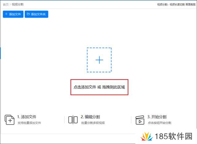 选择好操作功能之后,点击上传需要分割的视频文件。可以直接点击添加文件,也可以直接拖动上传文件。