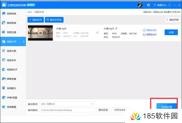第三步 最后,我们点击右下角的【全部处理】即可完成水印的添加。