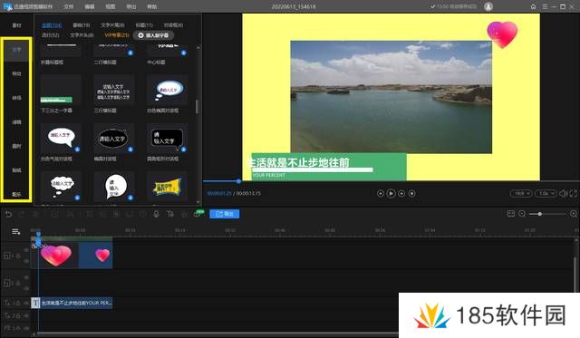 当然,我们也能在左侧的功能栏里给视频添加滤镜、文字、以及贴纸等特效,美化视频内容。