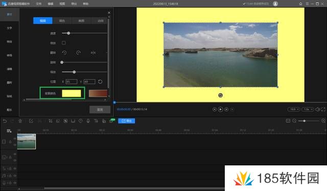 导入之后点击右上方的视频内容,鼠标按住拖动视频边缘的虚线可以对视频画面进行裁剪,松开鼠标裁剪就完成了,我们还能设置视频的背景颜色。