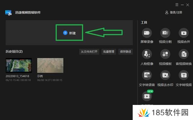 举例迅捷视频剪辑软件,我们打开之后,点击左上角【新建】然后导入需要裁剪的视频。